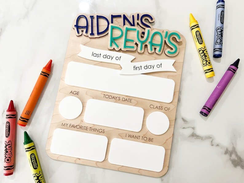 Mark your childâs academic journey with the My First Day of School Sign Back to School Board, a reusable and fully personalized milestone sign that brings extra joy and excitement to their school photos. Whether itâs daycare, kindergarten, or high school, this back-to-school board is the perfect way to document their big day, year after year.