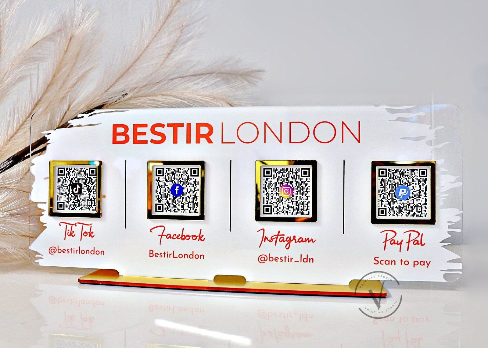 Recommendation: Revolutionize your salon, beautician, or hairdresser services’ marketing efforts with our Multi QR Code Social Media Sign designed for beauty businesses. Enable seamless social media engagement, effortless payments, and enhanced customer connections through a single, convenient signage solution. Strengthen brand loyalty, attract new clients, and stay ahead in the competitive beauty industry with this innovative marketing tool tailored to your beauty business needs.