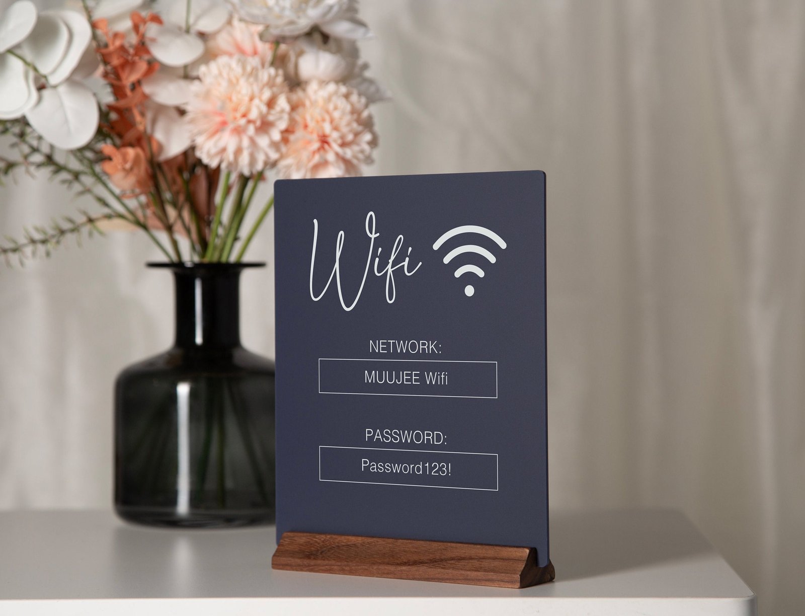 - Clear acrylic block: The sign is made from premium acrylic material, creating a durable and elegant display for your wifi password.